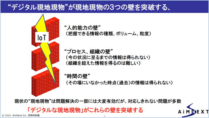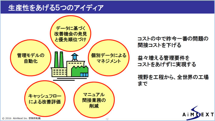 MCFrame Day 2016を締めくくるクロージングキーノートでは、エイムネクストの代表取締役である清威人が登壇し、「IoTがデジタルな“現地現物”を実現する ~生産性を13%向上させるスマート・ファクトリー 5つのアイデア~」と題する講演を行った。